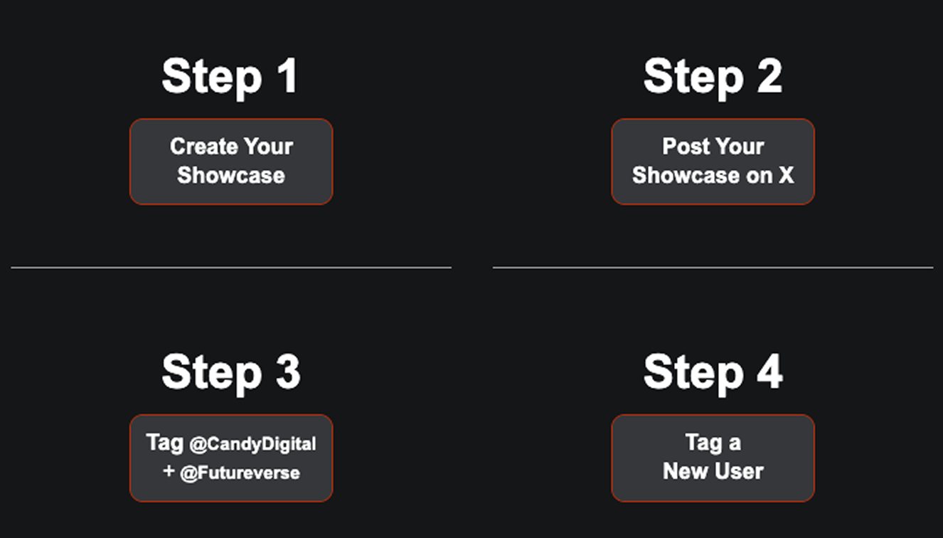 - Post your Legacy Unleashed Showcase Challenge link on X and make sure to tag @CandyDigital and @futureverse