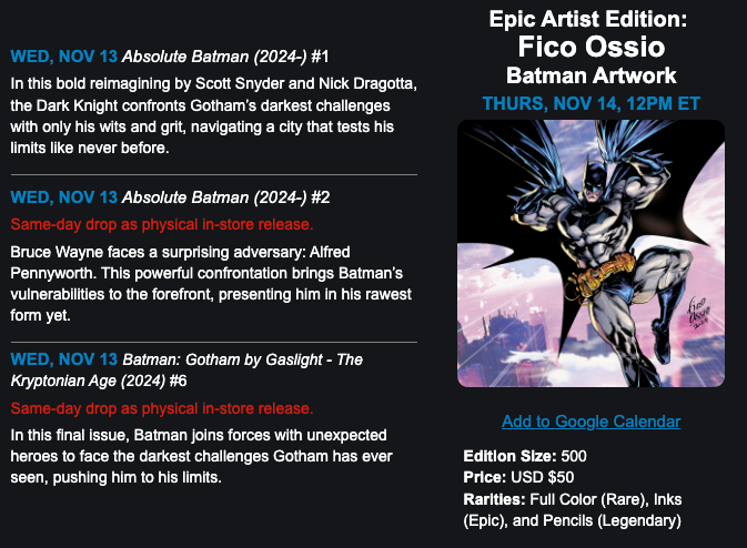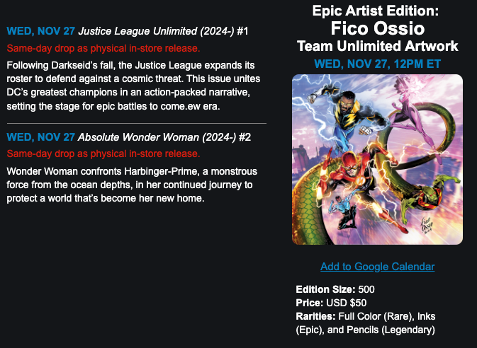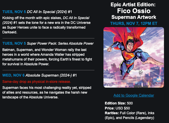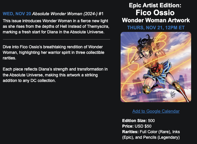 We’re unleashing a lineup of game-changing DC3 drops, Epic Artist Editions artwork by Fico Ossio, a free redemption, and exclusive rewards that will redefine your DC experience.