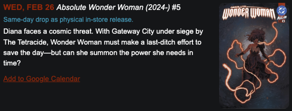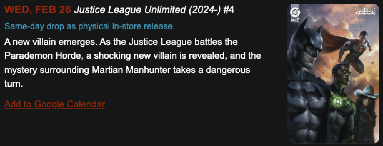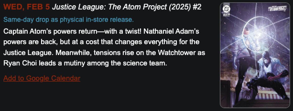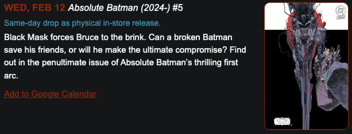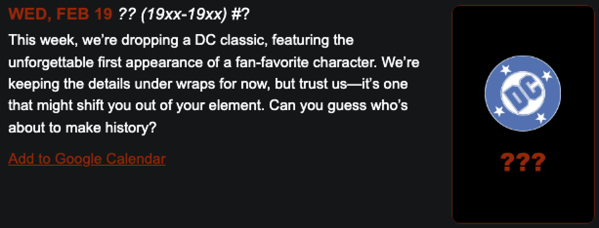 Here’s a week-by-week breakdown of the February DC3 drops you won’t want to miss: