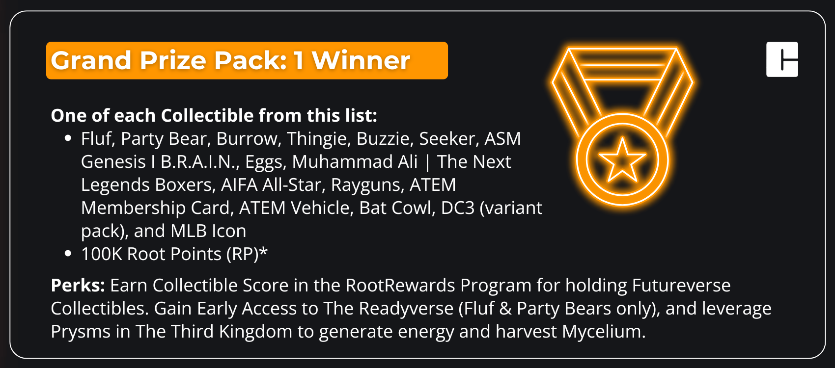 We're giving away a total prize pool of 100+ iconic collectibles and 10M RootPoints with special perks based on the collectible.