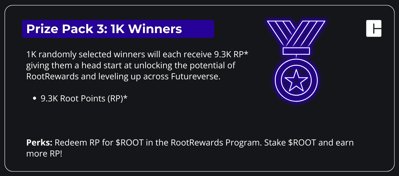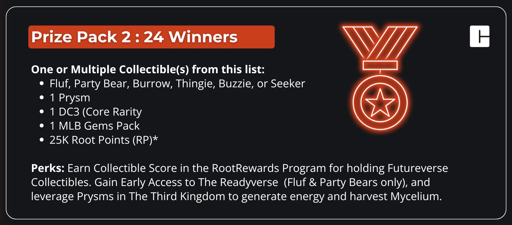 Once you've connected your FuturePass to your Candy account and signed up for RootRewards, you're in! You’ll be automatically entered for a chance to win one of the prize packs above** — including a Grand Prize to Flex your Futureverse bragging rights!