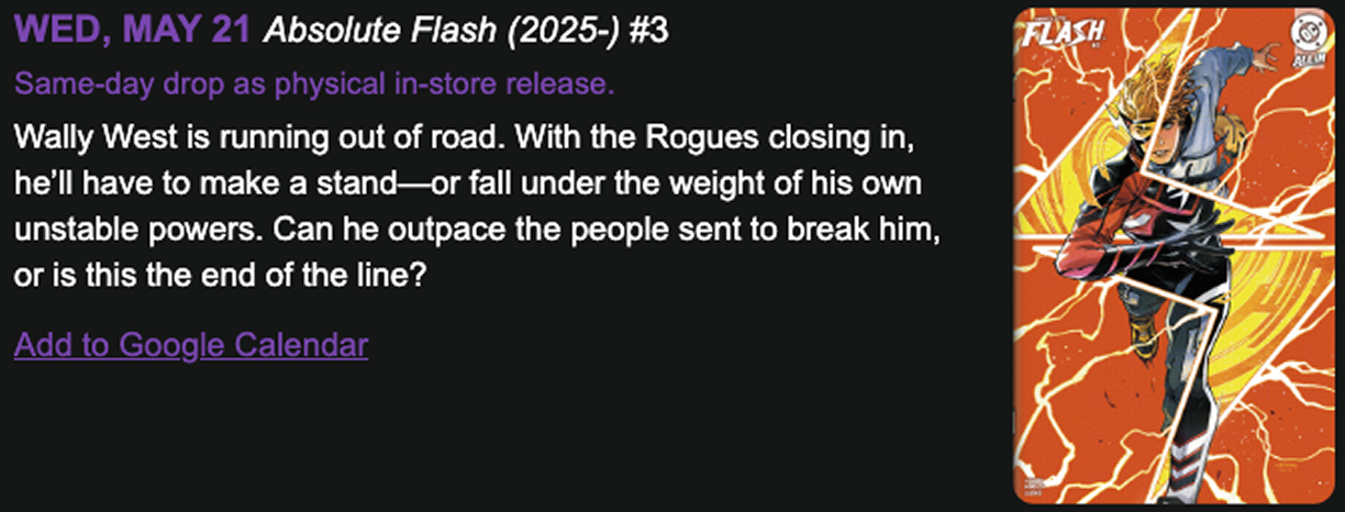 May’s DC3 lineup is packed with identity crises, cosmic judgments, and the return of fan-favorite characters across the DC Universe. From Supergirl’s imposter mystery to Wally West’s breaking point and Batman’s evolving war with Hush, these drops deliver seismic moments.